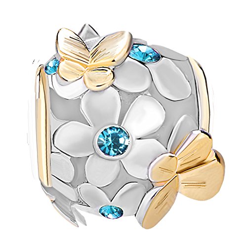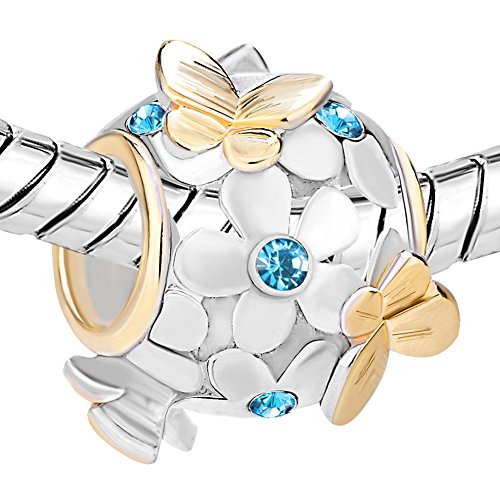 - Title : Pugster New 925 Sterling Silver Flower Butterfly Crystal Charm Bead Fits Pandora Charms Bracelet (March Birthstone)