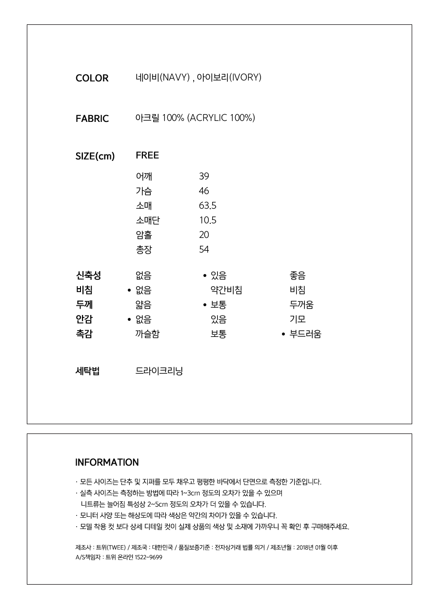 가디건으로 걸쳐도 좋고 니트웨어처럼 코디하셔도 예쁜 아이에요!