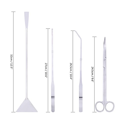 Features:? Curved Scissors - Gets into hard-to-reach places and mows down foreground plants? Substrate Spatula - Create smooth substrate slopes and terraces? Straight Tweezer - Securely grasp your items during maintenance and setup? Curved Tweezer - Plant your live aquatic plants with comfort and ease? ? Specification:? Material: Stainless Steel? Weight: 0.24g? Length: Curved Scissor: 25cm/9.8inch; Substrate Spatula: 32cm/12.6inch? Straight Tweezer: 27cm/10.6inch; Curved Tweezer:27cm/10.6inch? Package Content:? 1 x Straight Scissor? 1 x Substrate Spatula? 1 x Straight tweezer? 1 x Curved tweezer? 1 x Carrying bag? ? The straight and curved tweezers with great push back can securely grasp leaves, algae, detritus, dead bugs, or snails during maintenance and setup or plant stem plants with comfort and ease. These forceps are perfect for planting, replanting, or restating narrow or small plants beneath the soil or moving and trimming plants without disturbing nearby decor. They also make handy feeding tongs. The spatula will create smooth slopes and terraces to shape or reshape the substrate. The hemp pouch provides convenient storage for the whole tool set. 0 |