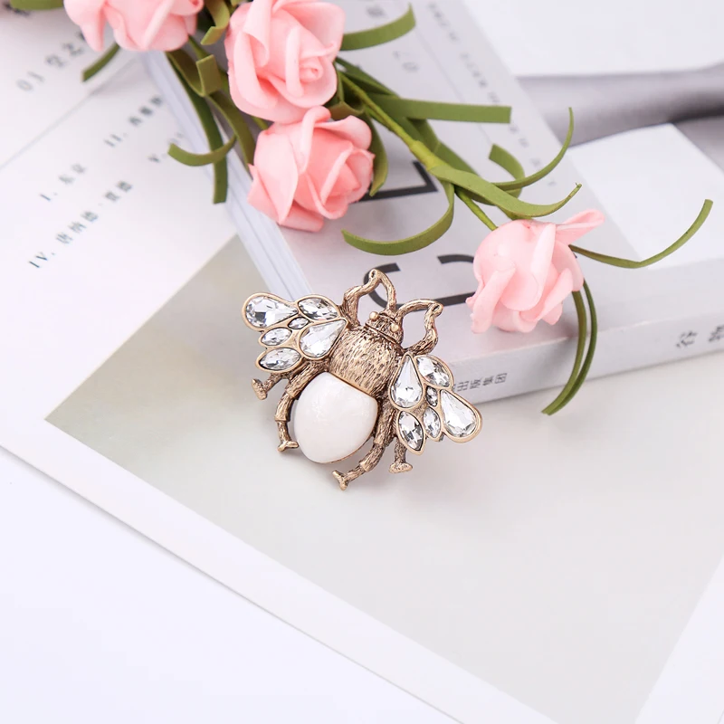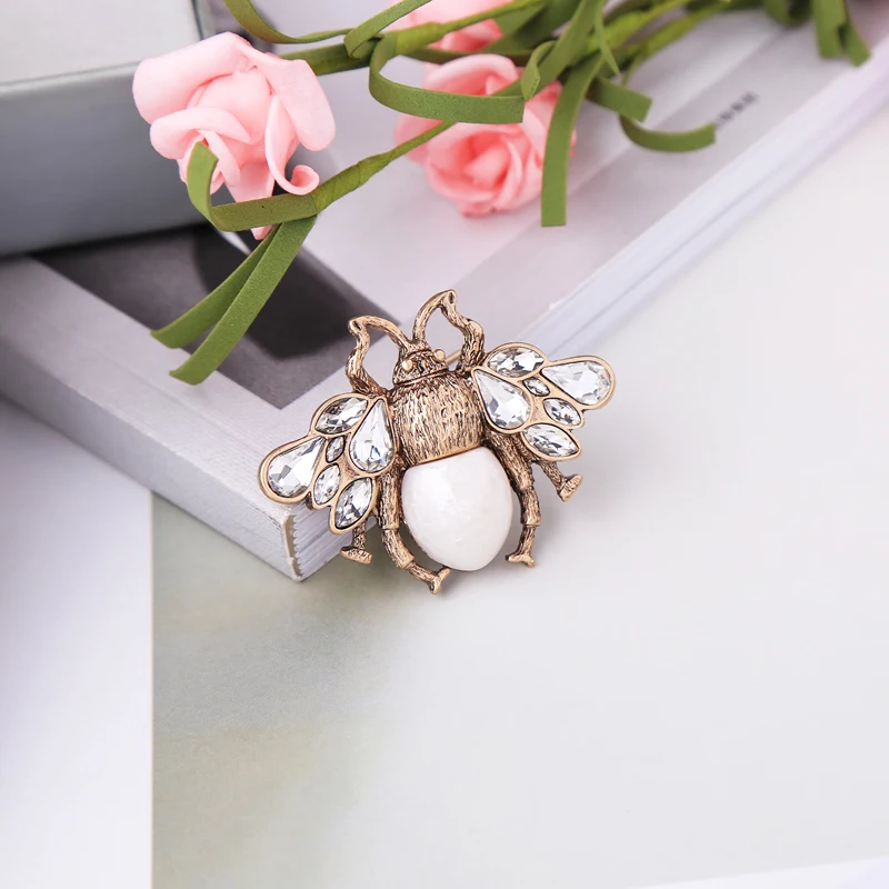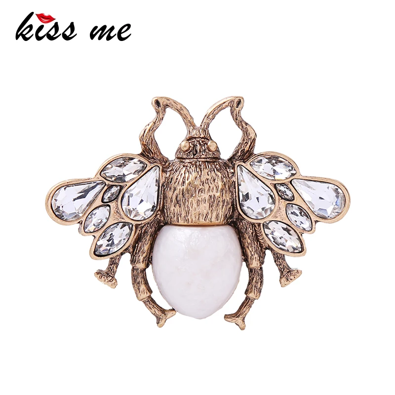 Production name ::KISS ME Cute Clear Crystal Imitation Pearl Insect Bee Brooches