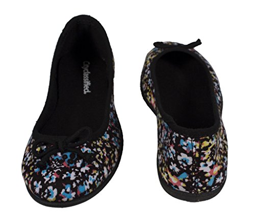 (City Classified)/Women's/Flats/DIRECT FROM USA/City Classified Women's Jersey Bow Flower Fabric Ballet Flats in Black