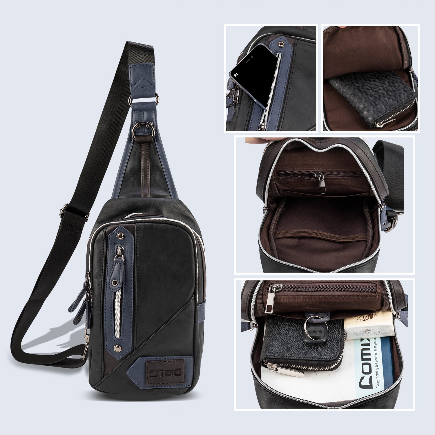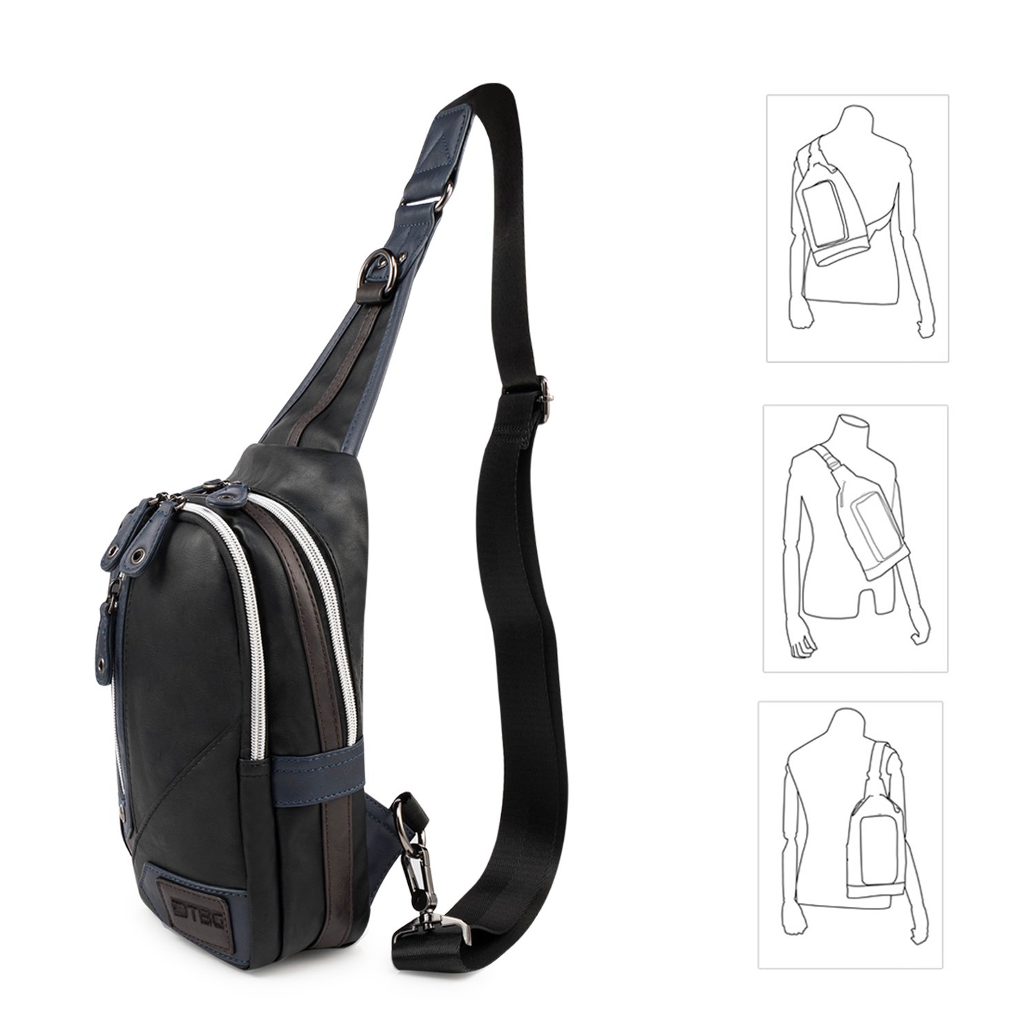 DTBG Body bag diagonal bag Men's leather waterproof 2 colors selectable 3 way specification