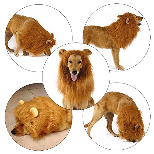 Studio : Boomen Publisher : Boomen Binding : Misc. Product Description Dog Lion Mane Wig, Adjustable realistic and Funny Dog Costume Clothes Pet Festival Party Fancy Hair for Medium to Large Dogs (With Ears)