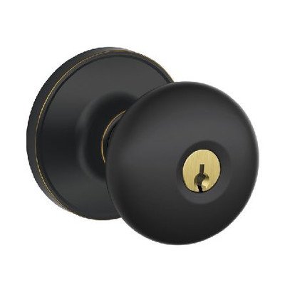 -. Feature : Easy installation / Fits all standard door preps / Keyed entry function with turn button locking; can be unlocked by key outside or by turn button inside / Finish - Aged Bronze / ANSI Grade 3