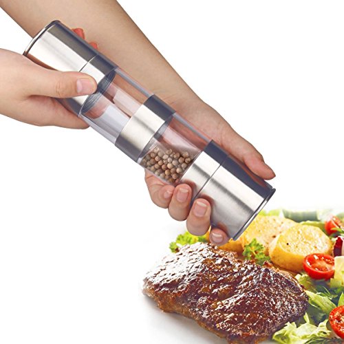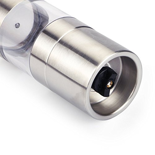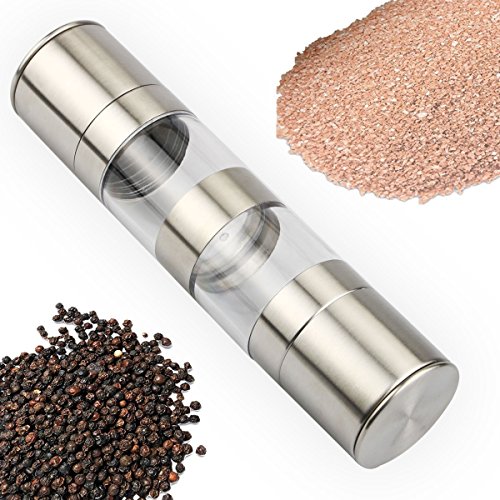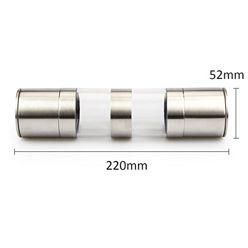 Salt and Pepper Grinder, Libar 2-in-1 Pepper and Salt Mill with Adjustable Ceramic Grinding Mechanism and Acrylic Body, Brushed Stainless Steel
