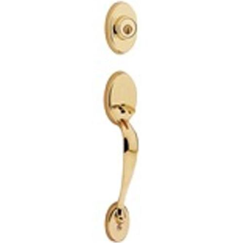 -. Feature : Kwikset Handleset / Brass Finish (US3) / Adjustable Backset 2-3/8" or 2-3/4"; RCAL (Round Corner Adjustable Latch) & Round Corner Strike (RCS). / Faceplate: 1" x 2-1/4" Round Corner. / Exterior Half Only: Requires 968 Interior Pack to complete handleset