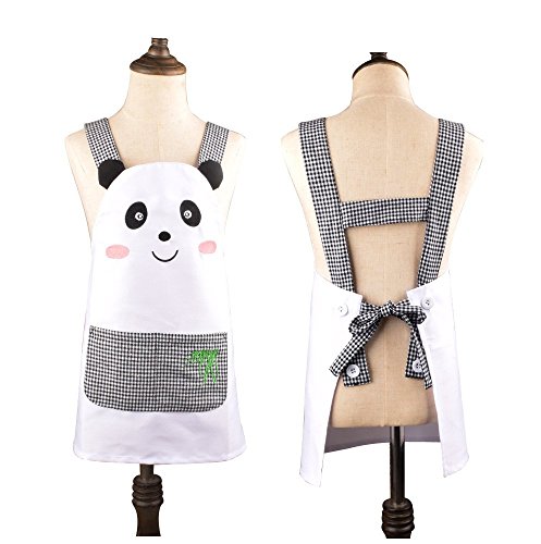 Cute Girls Boys Toddler Kids White Apron Cartoon Panda Pattern Kitchen Cooking Baking Apron with Pockets (2 to 5 Years Old)