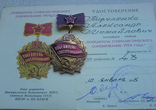 1974 Winner of socialist competition Tirulenko USSR Soviet Union Russian Labor Communist Bolshevik Medal