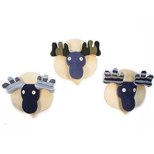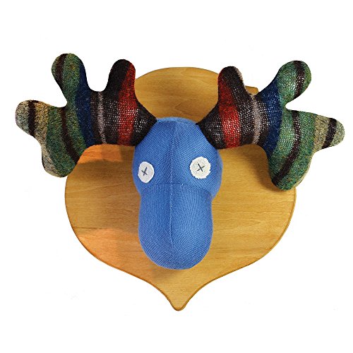 Cate and Levi 12" x 16" Handmade Moose Stuffed Animal Head Plaque (Premium Reclaimed Wool), Colors Will Vary