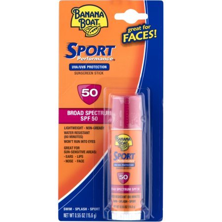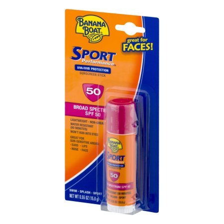 Studio : Banana Boat Publisher : Banana Boat Binding : Misc. Product Description Banana Boat Sport Performance For Face SPF 50. Banana Boat Sport Performance stick sunscreen protects against sunburn and long term skin damage with broad spectrum UVA/UVB protection. Lightweight and non greasy. The water resistant (80 minutes). Great for sun-sensitive areas like lips, nose, face and ears. 0