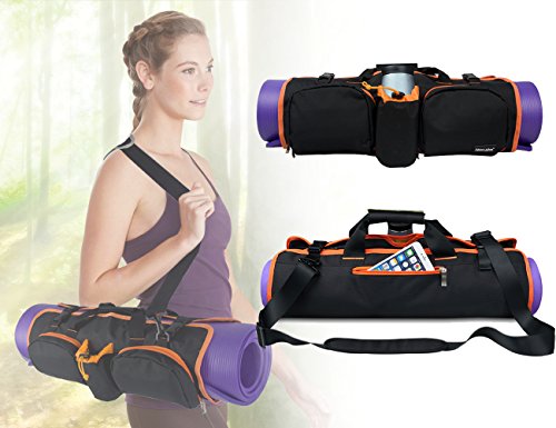 ♥ Keep your mat clean, dry and portable. Extend the life of your valuable yoga mat by protecting it in a quality constructed yoga mat bag ♥ 2 in 1 carrying way: shoulder and tote ♥ Easily adjust the shoulder strap to your height and preferred carrying position ♥ Durable fabric which are able to withstand any environment as well as daily commute to and from your practice ♥ The construction is sturdy with lots of room for yoga mat, towels, yoga straps, water bottle , keys, extra shirts, wallet, membership cards, tissues, journals, handphones, etc ♥ Top main portable buckle is wide enough to allow your yoga mat to slide in quickly and easily ♥ Ventilation eyelet to allow air flow for the bag to stay fresh and minimize odor ♥ Handy Side Accessory Pocket - Zippered