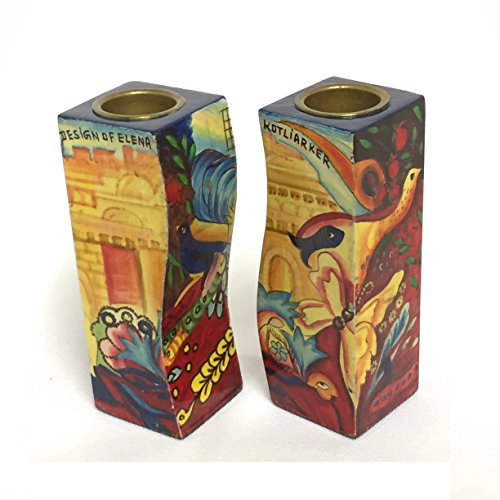 Decorative Wooden Interlocking Shabbat Candle Holder Set - Sky of Eternal City