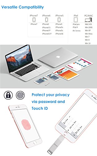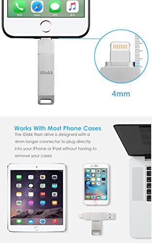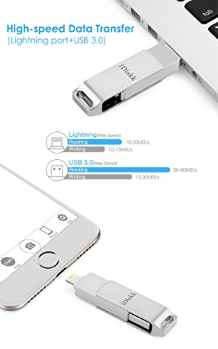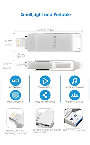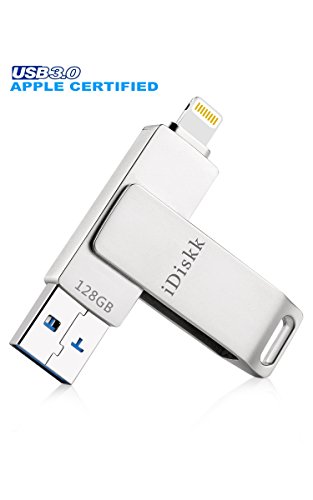 iDiskk USB 3.0 128GB iPhone Lightning Flash Drive for iPhone 6,iPhone 6s,iPhone 6 Plus,iPhone 5,iPhone 7 Plus, iPad, iPod,iPhone External Storage iPad USB,Touch ID Encryption and Apple MFI Certified
