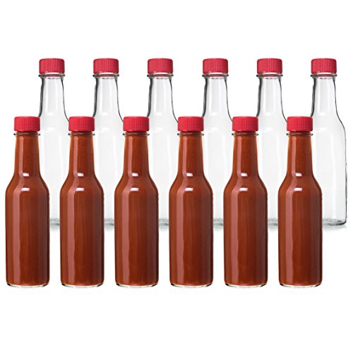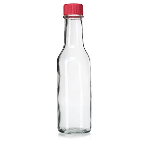 24 Pack - 5 Oz Empty Clear Glass Hot Sauce Bottles with Red Caps and Drip Dispensing Tops, By California Home Goods