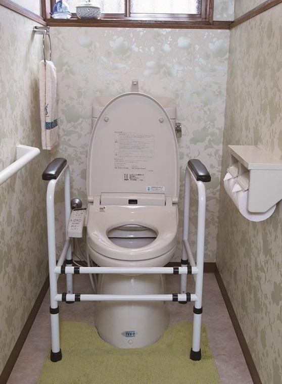 肘掛けのない椅子やトイレに使える手すりです。