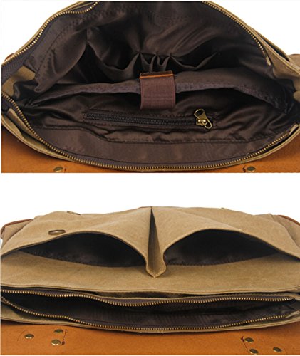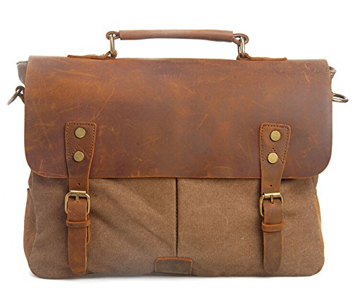 -. Brand : Bronze Times -. ClothingSize : 91.44(L)inch *25.4(W)inch *71.12(H)inch -. Department : unisex-adult -. Feature : Material: high density canvas + crazy horse leather / The 2'' widening shoulder straps can be adjust to 27'' ~50'' / Convenient magnetic closure for a quick access to your pocket / Outer medium size: 14 inch(L)*4 inch(W)*11 inch(H) to fit for an 11 to 14 inch device like computer or tablet / Construction of this bag: 1 main pocket with 2 card pockets, 1 interior zipper pocket, 1 laptop compartment; 2 vice magenetic button pockets in the front; 1 magnetic document or tablet compartment on the back -. Model : btbags0812-14VA -. ProductGroup : Apparel -. ProductTypeName : LAGE -. Size : 91.44(L)inch *25.4(W)inch *71.12(H)inch -. Title : Bronze Times(TM) Unisex Canvas Leather Briefcase Laptop Messenger Bag Fits 14" Laptop