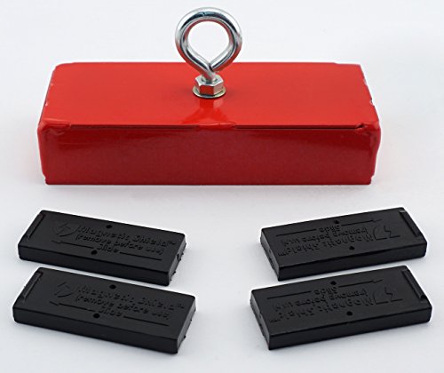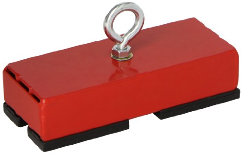 Heavy-Duty Retrieving and Holding Magnet, 5" Length, 2" Width, 1" Height with Eyebolt, Nut, and Magnetic Shields, 150 Pounds Pull, 1 each