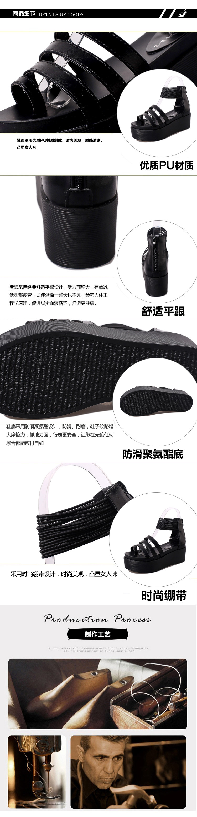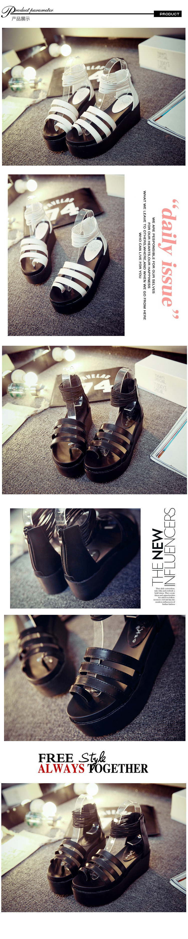 2016新款凉鞋女夏厚底坡跟中跟防水台高跟露趾学生罗马鞋松糕女鞋