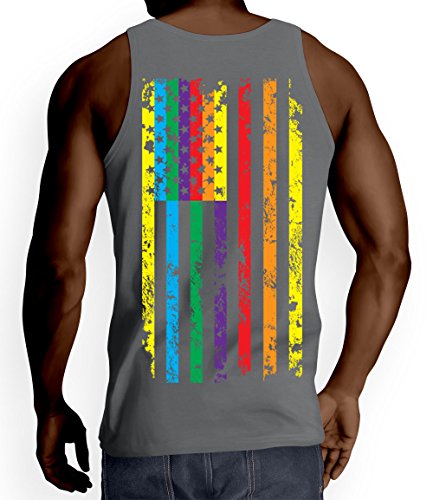 (HAASE UNLIMITED)/Men/T-Shirts/DIRECT FROM USA/Mens Big Rainbow American Flag Tank Top T-shirt