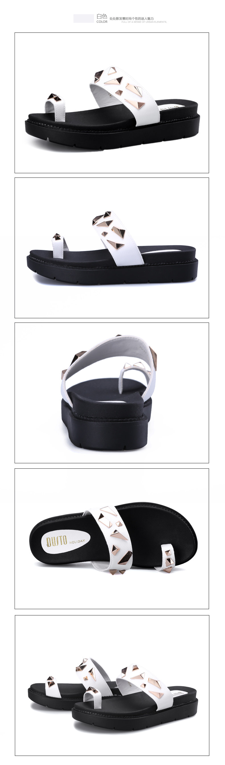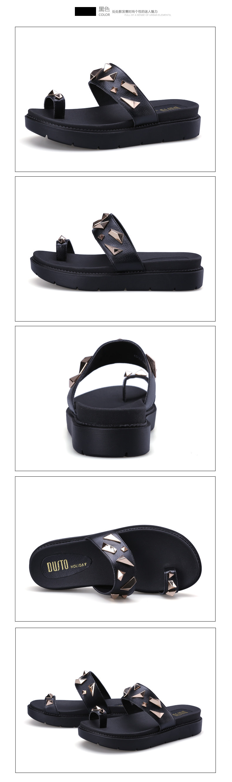 大东2016夏季新款韩版中跟平底套趾铆钉女鞋凉拖