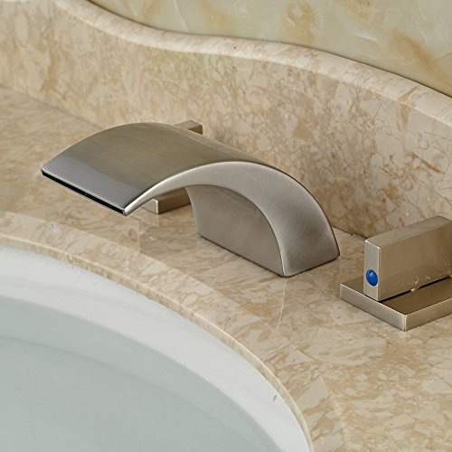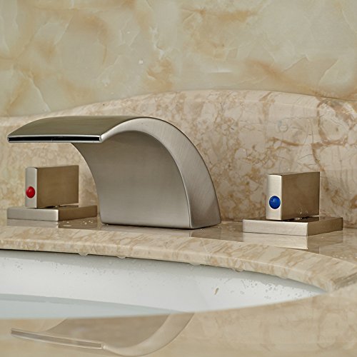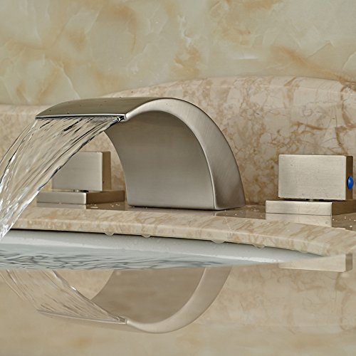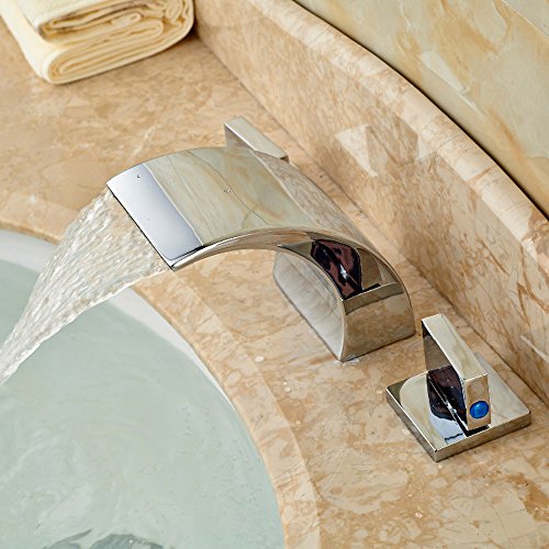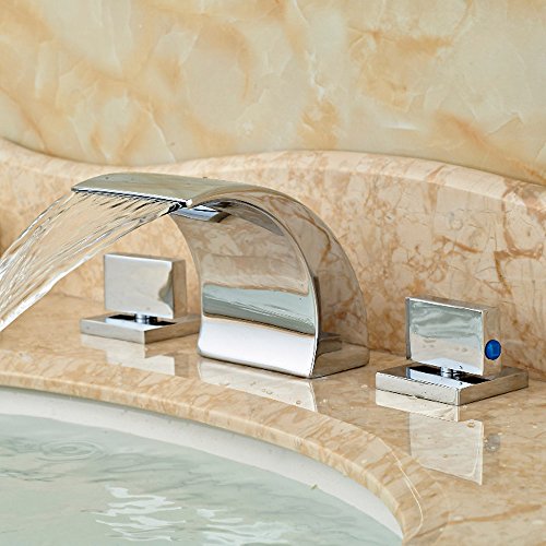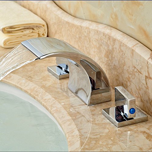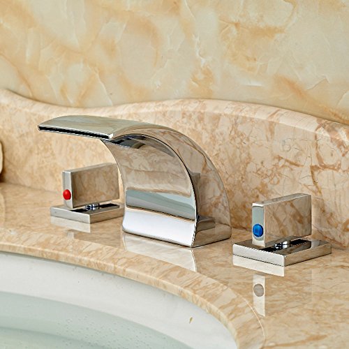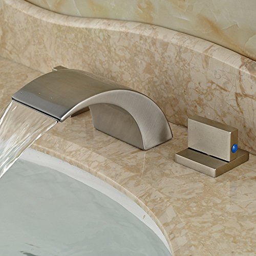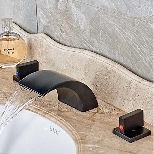 -. Title : Zovajonia Oil Rubbed Bronze Waterfall Bathroom Basin Sink Faucets Deck Mounted Widespread 3 Holes Mixer Taps