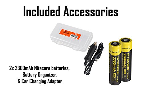 Nitecore MH40GT 1000 Lumen Rechargeable LED Flashlight with 2x 18650 Batteries, Car Adapter, and Lumen Tactical Battery Organizer