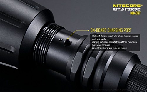 RECHARGEABLE - With two included rechargeable 18650 batteries, the MH40GT comes with an onboard charging port and AC adapter so you can conveniently charge your light without removing the batteries or buying a separate battery charger.