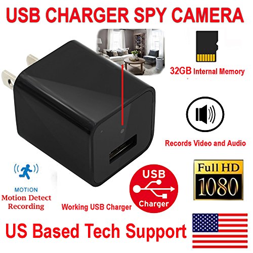 -. Feature : 1080P FULL HD Resolution @ 30 FPS, Motion Recording, Time and Date Stamped. / Just plug it in and it's Recording!!! Record Anywhere / Any time !!! / Working USB Charger. Prove to everyone it's just your phone charger. / 32GB Built-in internal memory. Most convenient way to record on the go! / Get Live US Based Tech Support by AES SPY CAMERAS (Check Our Reviews). Best Service Guaranteed!
