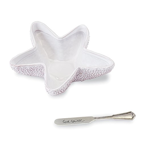 2-piece set. Ceramic dip cup features ruffled "tortilla shell" shape and "nacho ordinary salsa" sentiment on interior rim. Arrives with "mix-excellent" stamped silver plate ladle. Cup 2" x 5.5" diameter, ladle 5".Feature