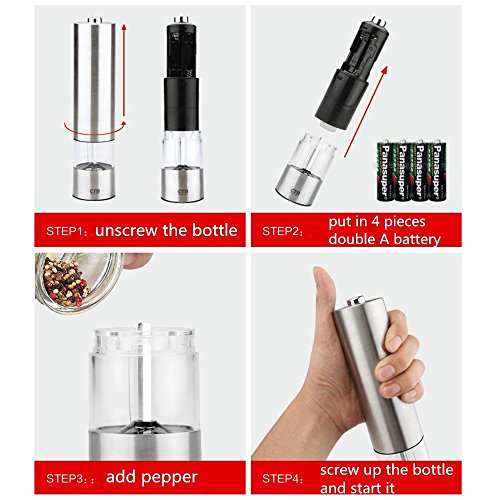 QCLTY tainless Steel Automatic Electric Pepper Mill and Salt Grinder