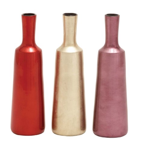 Features: Suits conventional and contemporary setting Timeless and elegant design Durable and long lasting Made of high quality wood material Your classy home decor definitely deserves this contemporary set of 3 assorted wood lacquer vases. The vase set is constructed in an artistic design with a long bottle neck to enhance its charm. These vases offer long life and durability as they are constructed with the finest quality metal. Crafted to finesse in a timeless design, this set of 3 assorted wood lacquer vases perfectly suits any modern or a traditional home. You can use these vases to glorify your office spaces as well. You can keep them in your large living room or your study to improve the overall ambience of the place. It comes with following dimensions 4" W x 4" D x 13" H 4" W x 4" D x 13" H 4" W x 4" D x 13" H.Feature