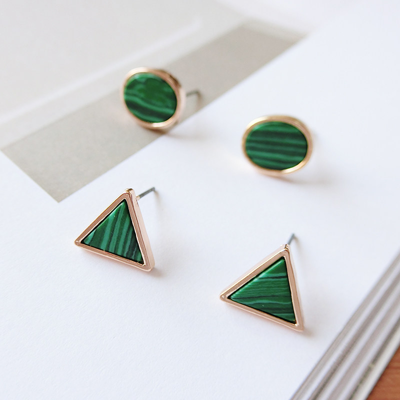 日韩简约复古气质几何形三角椭圆百搭金属耳钉