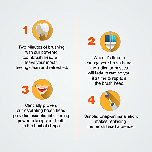 8 Replacement toothbrush heads provides a full year supply. Reminder bristles fade with use, reminding you when to replace them
