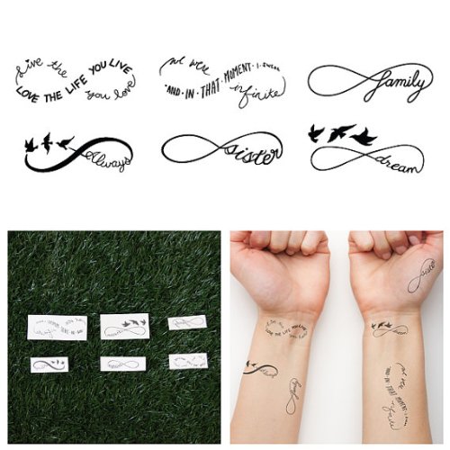Tattify Infinity Symbol Temporary Tattoos - Sweet Nothings (Complete Set of 12 Tattoos - 2 of each Style) - Individual Styles Available and Fashionable...