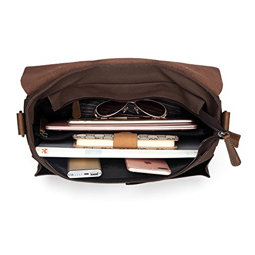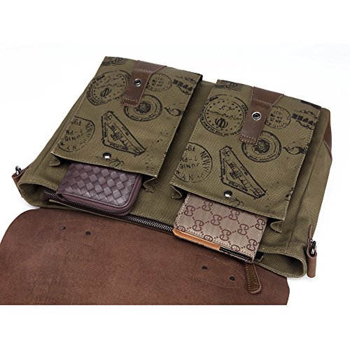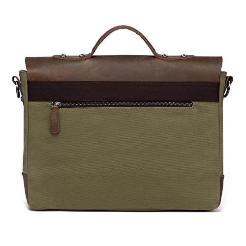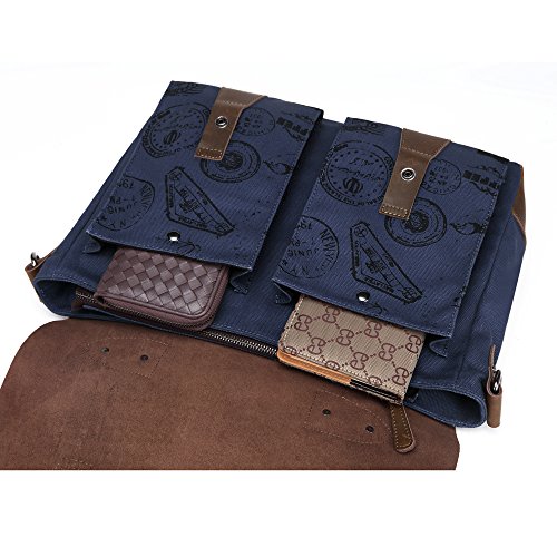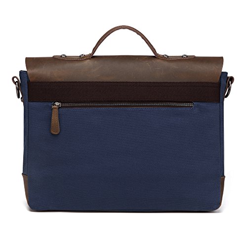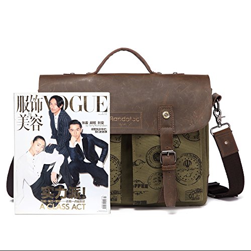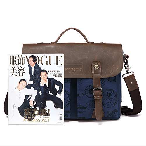 Materials 1.Canvas:Durable and easy-care.High density Canvas provides the function of durability,firmness and scratch-proof . 2.Crazy-horse Leather:Its natural scar patterns with soft touch and polished glossiness provide a stylish and vintage appeal.The more you use it,the more unique it becomes. 3.Cotton-webbing shoulder strap:Removable and high density. 4.Metal hardware components:High-end,unique and classical. Colors Coffee,Blue,Green,Black,Postmark coffee,Postmark blue,Postmark green,Postmark black Structure Details 1 x main compartment with secure zipper.Fits 14 inches laptop,tablet,documents,books,etc. 1 x inner pocket with zipper. 2 x inner pen slots. 2 x inner slide slots. 2 x big front pockets. Tips New Bag might come with material smell and slight scratches.Just put it on an airy space for a while or use your finger to rub the surface.Then the smell and scratches will disappear or alleviate. 0 |