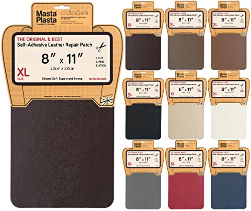 MastaPlasta, Leather Repair Patch, First-aid for Sofas Car Seats, Handbags Jackets, Plain 8-inch by 11-inch, Dark Brown