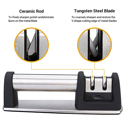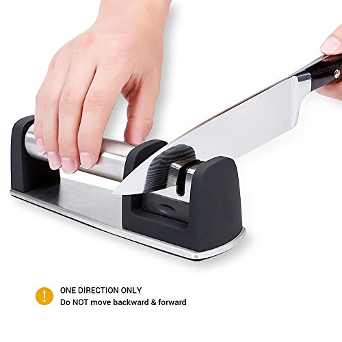 TWO-STAGE DESIGN- Two sharpening slots for precise sharpening; a COARSE slot for sharpening very dull or damaged knives and a FINE slot for smoothing and polishing to the blade's edges to the perfect angle. This design enables consistent results every time.