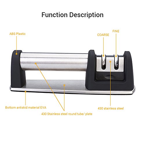 Description Don't let dull knives get in your way. Restore dull knives and keep new one's razor sharp with KITOOL's manual knife sharpener. Made from superior quality stainless steel this sharpener is built to last and can withstand sharpening thousands of times.