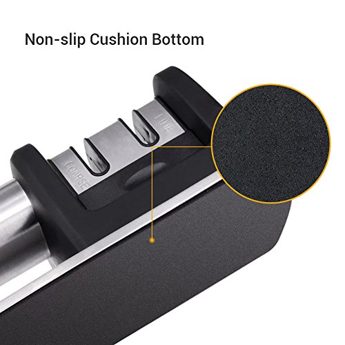 STYLISH, ERGONOMIC DESIGN AND DURABLE CONSTRUCTION. With its 2-stage sharpening system, you can polish your blades to razor-sharpness. This product is also designed for comfort. The non-slip cushion at its bottom offers a more stable base while its ergonomic handle provides a comfortable, easy grip. It's the perfect complement in most kitchens!