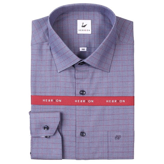 -면혼방소재의 헤링본무늬의 체크무늬 일반핏셔츠.