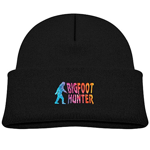 Tolloer Watercolor Bigfoot Hunter Unisex Kids Beanie Caps Black