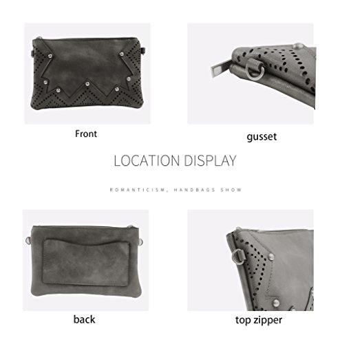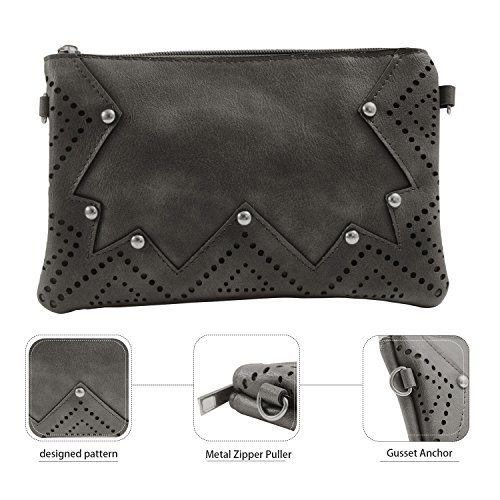 - Made with PU Leather and unique designed pattern patch work and rivets,perforation,cute and chic look.
