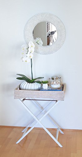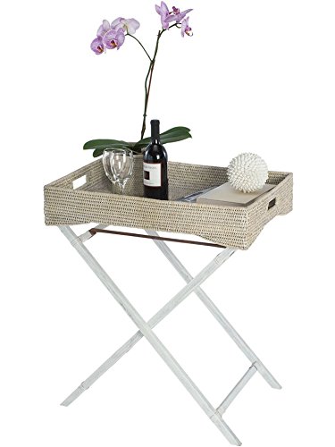 KOUBOO La Jolla Rattan Butler Tray with Folding Wood Stand, White Wash