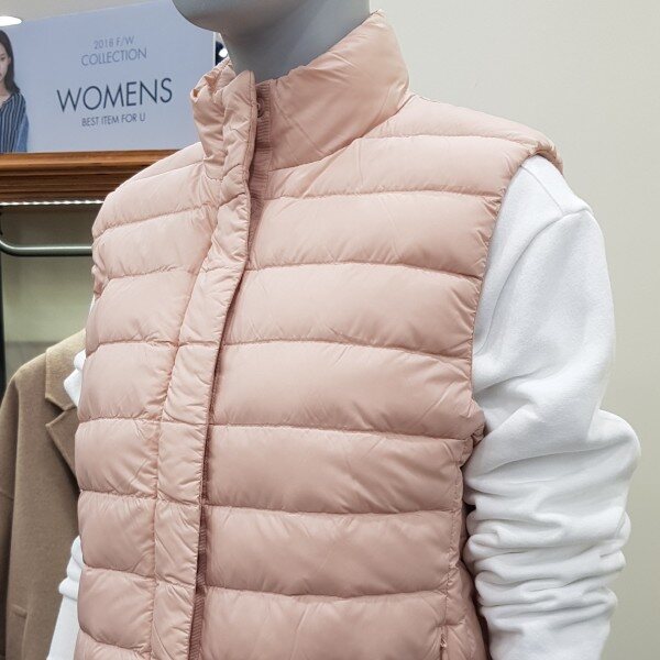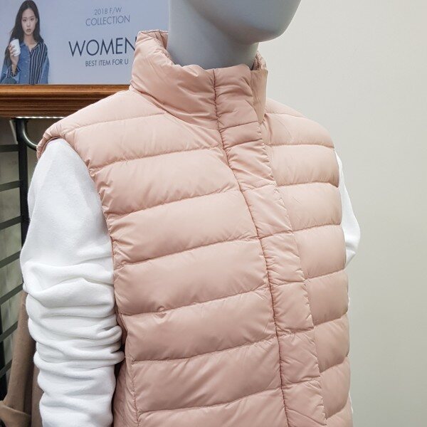 2018 겨울 신상품 여성용 하이넥 베스트 경량 다운입니다.무게감 거의 없고 소프트한 소재로 착용감이 뛰어납니다.실용성이 좋은 데일리룩으로 셔츠나 코트랑 레이어드하기 좋습니다