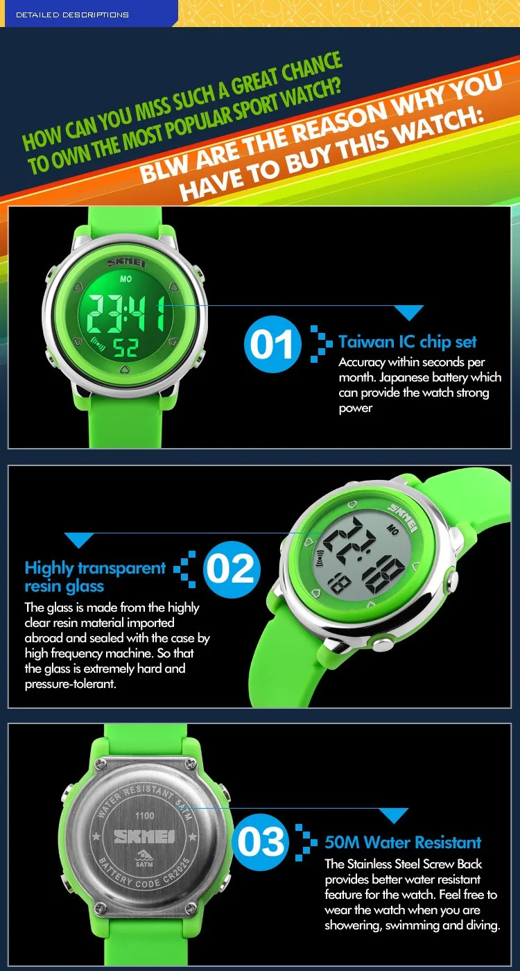 Feature:Alarm,Back Light,Water Resistant,Shock Resistant,Stop Watch,Complete Calendar,Chronograph,Auto Date,LED display