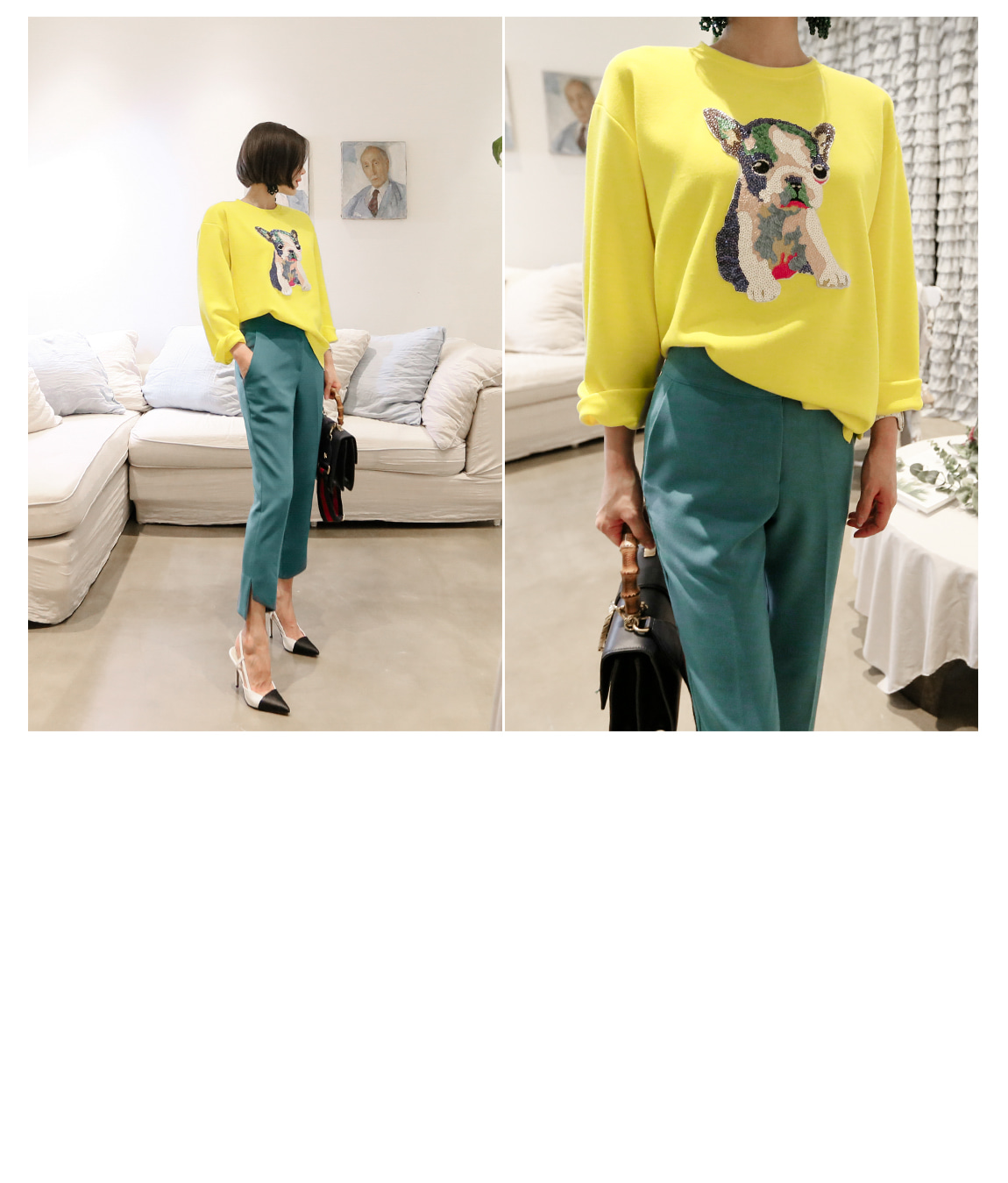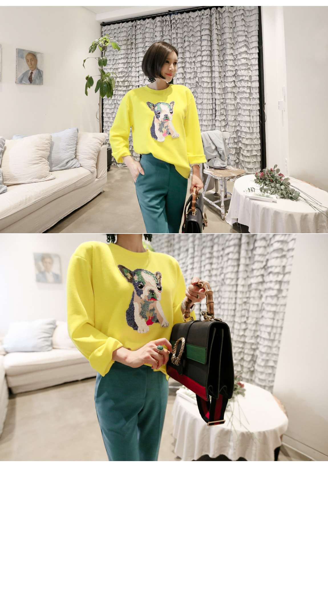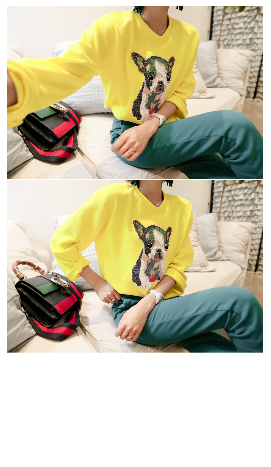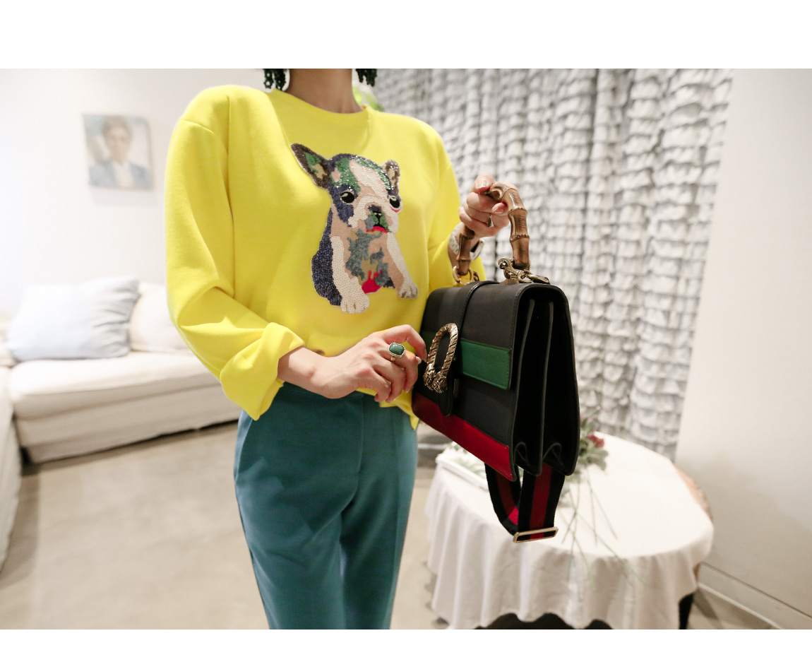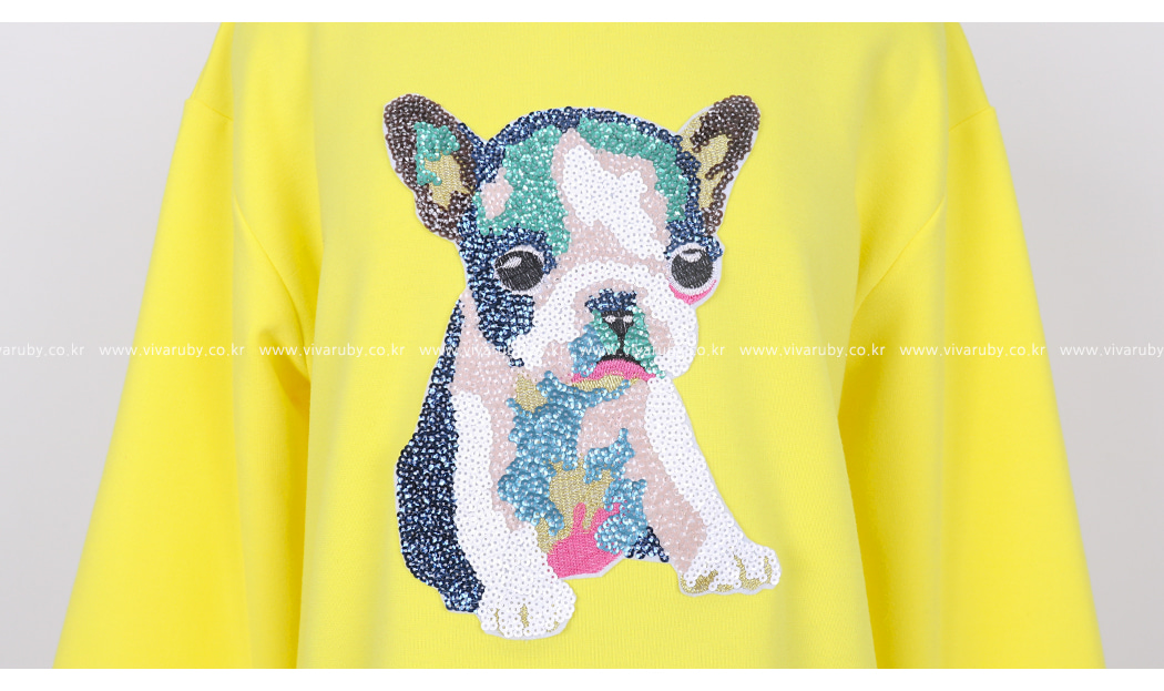 フロントのスパンコールの細部までの子犬が