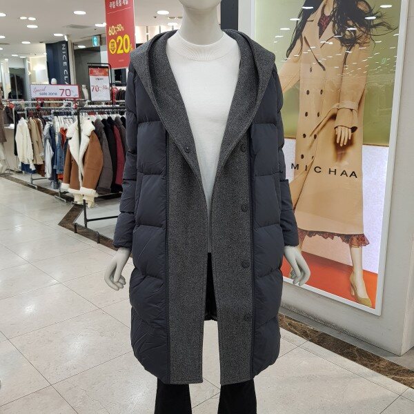 코트와 다운을 섞어 놓은 듯한 다운 스타일입니다.롱한 기장에 후드와 앞 단작에 소재 배색이 들어가깔끔하고 세련되면서도 멋스러운 디자인으로연령대에 상관없이 코디하기 좋은 스타일입니다.따뜻한 소재에 터치감이 부드럽고군더더기 없는 디자인으로다양한 스타일로 연출 가능합니다. 색상 : 그레이, 아이보리 사이즈 : 55. 66