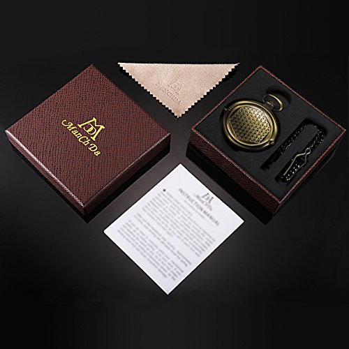 -. Title : ManChDa Men's Vintage Archaize Bronze Hide Carved Steampunk Chain Mechanical Pocket Watch in Gift Box