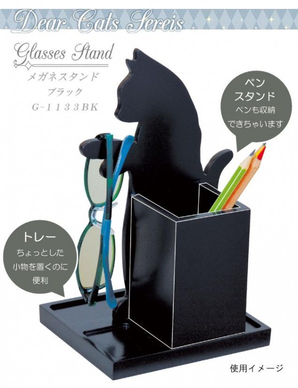 立ち上がった姿が可愛い猫のメガネスタンド。