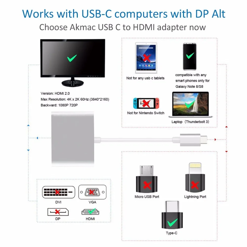 Feature 1:Usb C to HDMI 1080P Conveter adapter